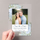These beautiful acrylic cards are a special and unique way to let your friends and family know to save the date for your upcoming wedding. The rustic design features your photo surrounded by dusty blue hand painted watercolor roses and blossoms along with sage green eucalyptus leaves and greenery. There is room below for your names, the wedding date and location. Stunningly beautiful way to begin your wedding journey.