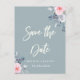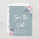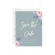 dusty blue roses save the date white script announcement postcard