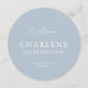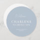 Elegant round wedding menu featuring a soft dusty blue background and modern minimalist typography.