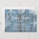 Dusty Blue Rustic Beach Seashells Baby Shower Invitation