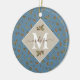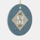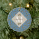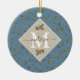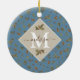 Dusty Blue Rustic Brown Leaves Monogrammed Ceramic Ornament