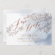 Elegant modern calligraphy save the date card with rustic floral design in copper brown color on serenity dusty blue watercolor background, great for modern rustic wedding, spring wedding or winter wedding.