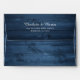 Personalized dusty blue rustic wood and sunflowers wedding envelopes with a return address. Our dusty blue envelopes feature sunflower flowers and string lights on a barn wood background. Matching items available.