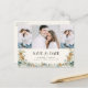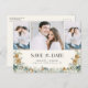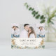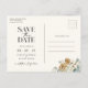 This elegant boho winter Save the Date photo announcement postcard features beautiful hand-painted watercolor dusty blue leaves and berries, cream anemone flowers, sage greenery, and pinecones arranged as a stylish frame on an ivory | cream background with 3 photos. The back includes text for personalizing. Find matching items in the Winter Dusty Blue Floral Wedding Collection.