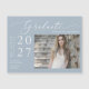 Yay! Your middle school, high school, college/university, tech school, or graduate program student did it and is graduating! Celebrate one of their life's precious moments and send out this graduation announcement magnetic card. The magnet features a simple, elegant modern minimalist style with beautiful calligraphy script on a dusty blue background and the graduate's photo. Just customize and replace the text and photos in the personalization box.
