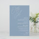 A beautiful typography based wedding menu card featuring your initials in oversized script lettering at the top, in tone on tone shades for a watermark effect. Personalize with your menu items beneath, aligned at the right. Our Dusty Blue colorway is an elegant mix of ethereal blues, with white and blue-gray lettering on a dusty medium blue background.