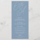 A beautiful typography based wedding menu card featuring your initials in oversized script lettering at the top, in tone on tone shades for a watermark effect. Personalize with your menu items beneath. Our Dusty Blue colorway is an elegant mix of ethereal blues, with white and blue-gray lettering on a dusty medium blue background.
