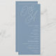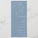 A beautiful typography based wedding program card featuring your initials in oversized script lettering at the top, in tone on tone shades for a watermark effect. Personalize with your ceremony details beneath, and customize the back with your wedding party. Our Dusty Blue colorway is an elegant mix of ethereal blues, with white and blue-gray lettering on a dusty medium blue background.