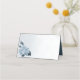 romantic dusty blue shades camellia and chrysanthemum flowers with cute polka dots bow botanical place card