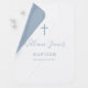 Featuring script signature name. Personalize with your special baptism or christening information in chic dusty blue lettering on a white background and a dusty blue background on the reverse. Designed by Thisisnotme©