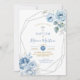 Dusty Blue Silver Floral Geometic Baptism Invitation