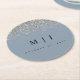 Dusty Blue & Silver Glitter Wedding Round Paper Coaster