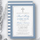 Dusty Blue Silver Striped First Holy Communion Invitation