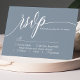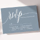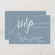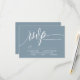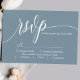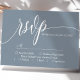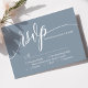 This dusty blue RSVP card features a modern calligraphy script font, adding a touch of timeless grace to your wedding stationery. The minimalist design keeps the focus on the RSVP details, ensuring a clear and stylish response from your guests.