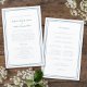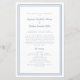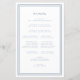 A clean and modern dusty blue wedding ceremony program designed for couples who love understated elegance. The layout features clear typography, a refined script accent, and a structured order of service that guides guests through the ceremony with ease. Perfect for church weddings officiated by a Reverend, this minimalist program pairs beautifully with classic, modern, or formal wedding décor. Customize the wording, timeline, and ceremony details in Zazzle’s design tool to match your day.