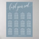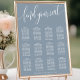 Welcome your guests with this elegant dusty blue wedding seating chart. Featuring a minimalist design with modern script that says find your seat, this seating chart is perfect for a sophisticated and stylish wedding. The soft color and clean layout provide a refined and organized look, ensuring your guests can easily find their seats. Customize with your names and table arrangements to create a unique and cohesive addition to your wedding decor. This seating chart accommodates up to 12 tables, making it ideal for a well-planned and elegant celebration.
