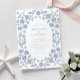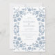 Dusty Blue Simple White Folk Floral Wedding Invitation