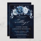 Dusty Blue Slate Navy Floral Botanical Wedding Inv Invitation