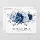 Dusty Blue Slate Navy Floral Wedding Save the Date Postcard