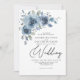 Dusty Blue Slate Pastel Light Floral Boho Wedding Invitation