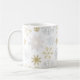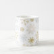 Cozy dusty blue winter mug decorated with soft blue, gray, and gold snowflakes. A perfect seasonal coffee cup for winter mornings, holiday gifting, or a winter baby shower theme. Makes a thoughtful gift for mom-to-be, teachers, coworkers, or anyone who loves a soft winter aesthetic. Coordinates with the matching dusty blue winter baby shower collection.