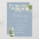 Dusty Blue String Lights Floral Monogram Wedding Invitation