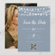 Dusty Blue String Lights Modern Script Save the Date Template for you to customize. Add your beautiful, photo to the back of the Invitation/Announcement.