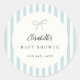 Dusty Blue Stripes Elegant Vintage Boy Baby Shower round stickers with a cute blue bow