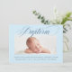 Dusty Blue Subtle Cross Script Baptism Photo Boy Invitation