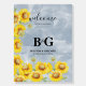 This design features a dusty blue watercolor background with rustic yellow sunflowers and modern style monogram. A rustic country style wedding welcome sign design with modern elements. Matching wedding invitations and other stationery items are also available.