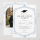 Host an elegant celebration with this "Dusty Blue Toile Frame" graduation invitation. Featuring a sophisticated vintage-style floral border in muted blue and a classic black grad cap icon. Its timeless aesthetic and clean typography make it perfect for the Class of 2026. Ideal for graduates wanting a refined, traditional, yet modern botanical look for their big day.