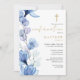 Dusty Blue Transparent Floral Gold Confirmation Invitation