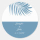 Dusty Blue Tropical Palm Tree Leaf Cool Wedding Classic Round Sticker