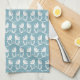 A playful tulip striped botanical patterned teal towel perfect for a hostess gift. Blue with Ivory.