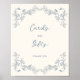 Dusty blue rustic floral vintage chinoiserie wedding 'Cards & Gifts' poster.