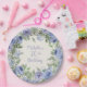 These 70th birthday party paper plates are designed with a cute wreath of dusty blue watercolor floral and sage green leaves. Text is fully customizable, so design these paper party plates for anyone of any age.