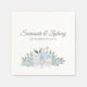 These beautiful wedding napkins feature a design that is simple, elegant and rustic. Features a beautiful hand painted watercolor cluster of roses, blossoms, eucalyptus leaves, and garden greenery in shades of pale dusty blue and sage green. There is space for the names of the couple and wedding date.