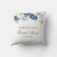 Dusty Blue Watercolor Floral Script Bridal Shower Throw Pillow