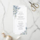 This dusty blue wedding ceremony program features a soft watercolor floral design with a clean, elegant vertical layout.