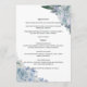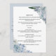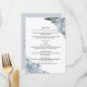Elegant watercolor floral wedding menu featuring peony and hydrangea in accents of dusty blue, sage, and grey.