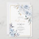 Dusty Blue Watercolor Flowers Baptism Invitation