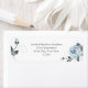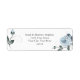 One side is a single dusty blue rose bud the other a bouquet of dusty blue roses. Your name and address centered in modern contemporary style text . This is part of a wedding stationery collection with matching wedding accessories. Design created for the BarefootBride™ © by WhimsicalArtwork™