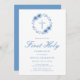 Dusty Blue Watercolor Wreath First Communion Invitation