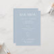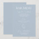 Designed in a minimalist, luxury style, this bar menu beautifully presents your signature cocktails, wine, beer, and non-alcoholic selections in a clean and easy-to-read layout. The dusty blue background paired with delicate script and modern typography adds a romantic and sophisticated touch, perfect for estate weddings, garden venues, and black tie celebrations.