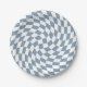 Modern bohemian Dusty Blue color theme wedding party products. Evergreen retro trendy warped checks design, warped checkered paper plates in beautiful elegant and chic Dusty Blue and white color.