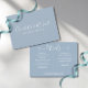 An elegant wedding details information enclosure card personalized with your special details set in stylish typography and your names and wedding date on the reverse on a dusty blue background. You can customize the background to your favorite wedding theme color. Designed by Thisisnotme©