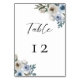 Dusty Blue Wedding Floral Elegant Simple Table Number