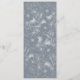 Elegant, modern, botanical dusty blue wedding menu with faux silver floral lace and simple calligraphy script.