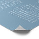 This dusty blue reception seating chart exudes tranquility for a summer coastal wedding by the sea. Personalize this light grey blue decor with elegant minimalist white typography to match your serene bridal color scheme.