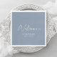Add a refined touch to your wedding table with this elegant dusty blue napkin, featuring the phrase "Welcome TO OUR WEDDING" in classic lettering. Perfect for minimalist, timeless, or romantic wedding styles, this napkin enhances your guest experience with simple elegance and thoughtful detail.